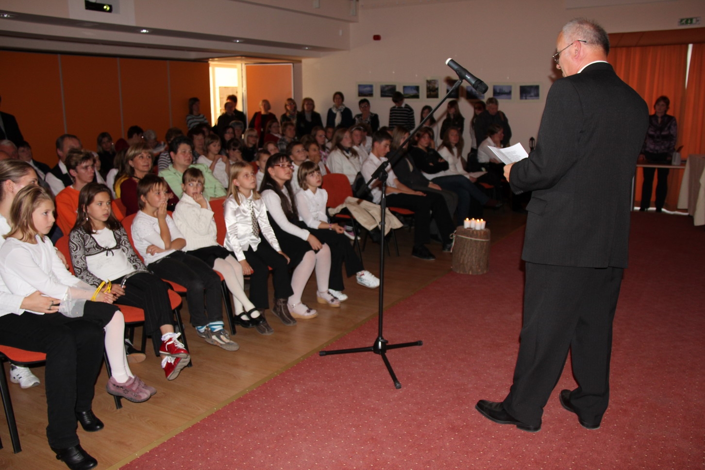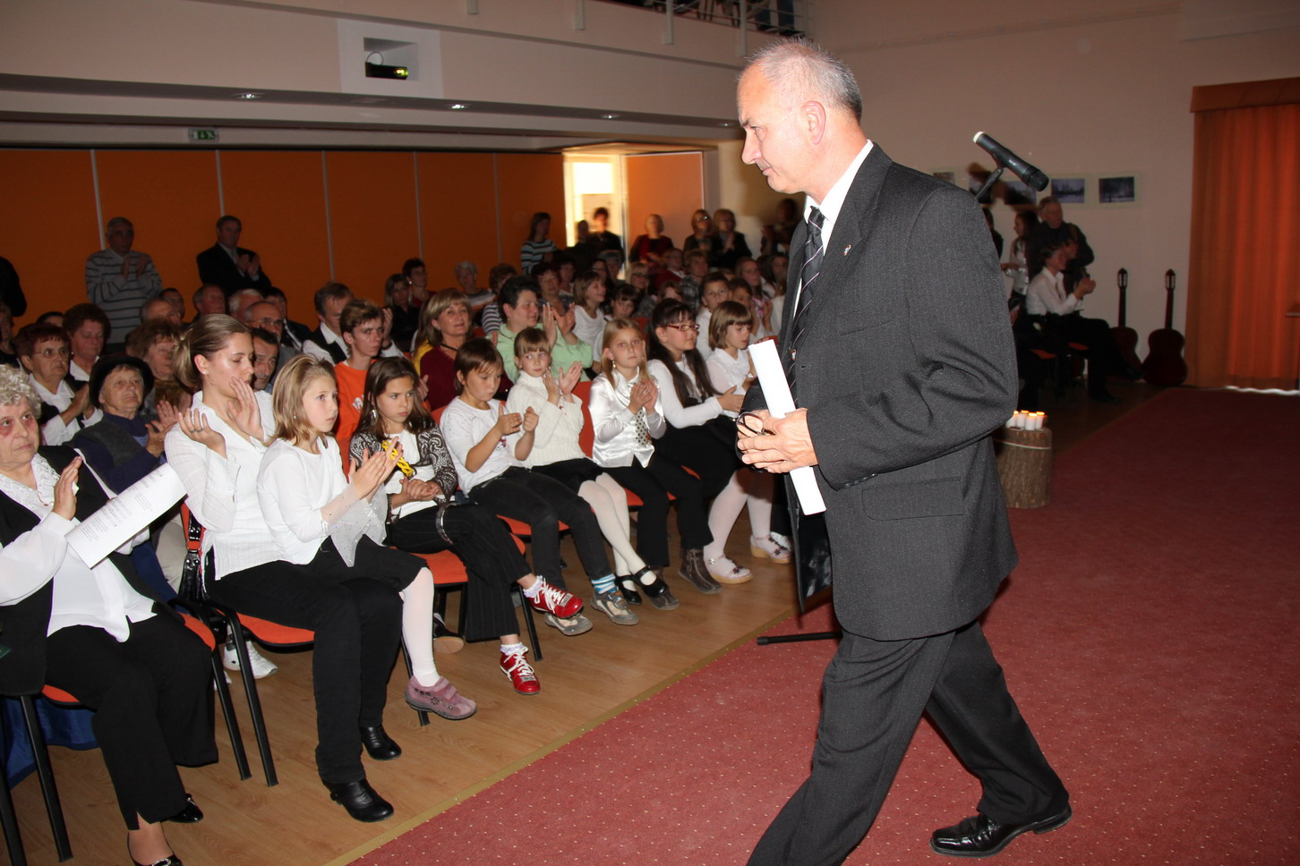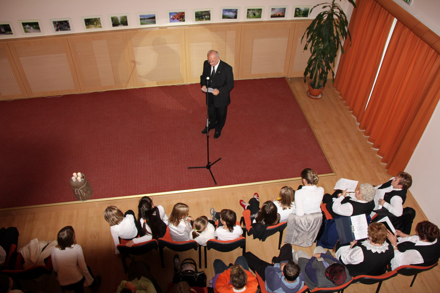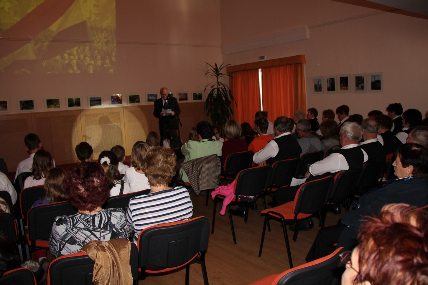 Az idei évben október 22-én a kora délutáni órákban került megrendezésre nemzeti ünnepünk alkalmából megszervezett ünnepség. A nagyterem és a karzat zsúfolásig megtelt községünk lakóival, az intézmények és az önkormányzat dolgozóival, képviselőkkel, civil szervezeteink képviselőivel. Az előadást színesítette a projektoros vetítés és fénytechnika is. Az ünnepi műsort felkérésemre Balogh Sándorné szervezte keretek közé és a háziasszony szerepét is ő vállalta. Elsőként az általános iskolánk ünnepi műsorát tekinthették meg az érdeklődők, melyet Steininger Adél tanárnő állított össze és tanított be. Ezt követően – felkérésemre – Csigó László képviselő mondta el az ünnephez kapcsolódó gondolatait. Az iskolások műsora ekkora már az ünnephez illő hangulatot varázsolt a terembe. A beszédben elhangzott történelmi visszatekintés csak megerősítette az egykori forradalom- és szabadságharc eszméinek korunkba adoptált értékeit. Ezután a nyugdíjas egyesület Dalárdája adta elő erre az alkalomra összeállított műsorát. (Már az új fekete „egyen mellényben” láthattuk a dalnokokat, melyen a község címerét ábrázoló kis jelvény díszelgett.) Kozma László szavalatával zárult fellépésük, melyet ismét az iskola (alsósainak) műsora követett ismét. A gitár kísérettel előadott dalt oktatási intézményünk új énektanára – Horváth Friderika – tanított be és vezényelt le.