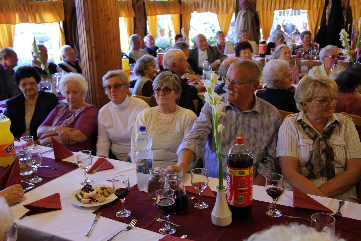 Az abdai Gulyás Csárdában tartatott az idősek napi ünnepség melyet az önkormányzat és a Vöröskereszt helyi aktivistái szerveztek. Röviddel a 15 órás kezdés előtt már megtelt az étterem, s jó volt bekapcsolódni itt-ott a szép korúak legkülönbözőbb témában folytatott beszélgetéseibe múltról és jelenről. Balogh Sándorné köszöntőjét követően az óvodások, majd az iskolások műsorát tekinthették meg. Ezt követően Szabó Zsolt polgármester beszélt az időskorról, megbecsülésről, gondoskodásról. Az idősekről történő gondoskodás egyik helyi szereplője Márton Józsefné családgondozó, aki évtizedek óta látja el ezt a feladatot, munkaköri leírásában foglaltakon messze túlteljesítve. Hosszú és lelkiismeretes munkáját megköszönve a polgármester – az ünnepség által kínálkozó legmegfelelőbb körben – jutalomban részesítette. Hagyomány immár az is, hogy a két legidősebb hölgyet és urat köszönti az önkormányzat. (A gyakorlatban ez nem mindig a községünk legidősebbjeit jelenti, mert nem mindig jönnek el, vagy ha mégis, így minden évbe ugyanazokat köszöntenénk. Ezért a szervezők a legidősebbek közül választanak ki évente két-két új személyt.) Az idei évben Takács Ferencné Mariska néni és id. Herceg Feri bácsi voltak a felköszöntöttek, akik egy csokor virágot és egy ajándékcsomagot kaptak.  A műsort a nyugdíjas egyesület Dalárdájának fellépése zárta, melyet Karsai Klára tanított be. A vacsora sertéspörkölt volt, a jó hangulatról Rugli Béla zenész gondoskodott.