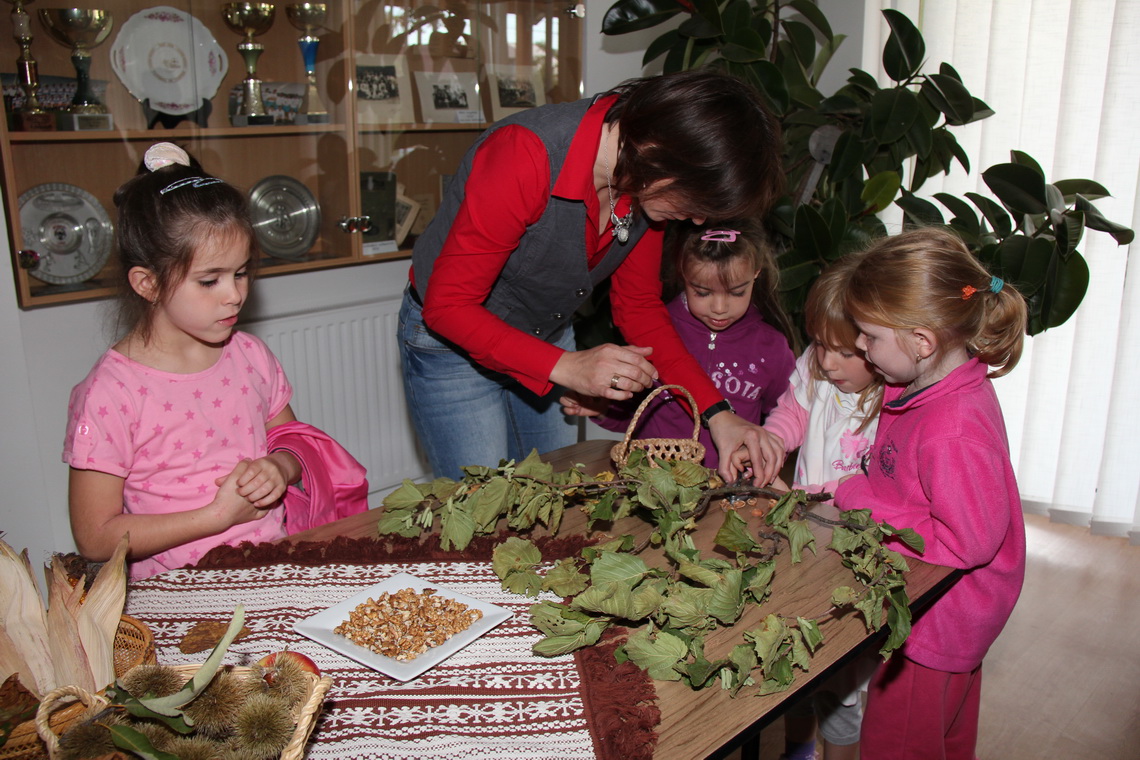 Szeptember 29-én a Községháza dolgozói a munkájukon felülit vállalva, vendégül látták az óvodás nagycsoportosokat és az iskola első osztályos tanulóit. A nagyteremben Saru Dani beszélt nekik vetítőképes előadás mellett az őszi erdő fáiról, terméseiről és az erdőben található állatokról.